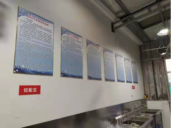“阳光宴会厅”由宴客大厅、更衣室、粗加工区、切配区、烹饪区、凉菜制作专间、清洗消毒间、食品库房等组成。加工作操作区添置了大功率油烟机、冰柜、不锈钢切配台、留样冰箱等食品安全设备设施,保障了农村家宴集体聚餐安全,让广大村民吃得放心,吃得舒心,吃得开心。宴客大厅宽敞简洁,设置舞台,四角配备立式空调,厨房里还配备了摄像探头,整个备餐流程实时透明化,并购买了食品安全责任险,有效防范化解食品安全责任风险。