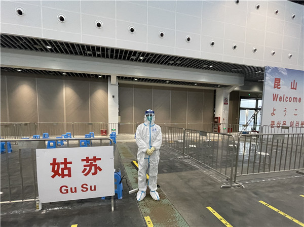 下午三点半,姑苏区市场监管局团委书记王洁到达昆山花桥博览中心中转基地,顺利完成了今日批次的境外入境旅客转运工作。